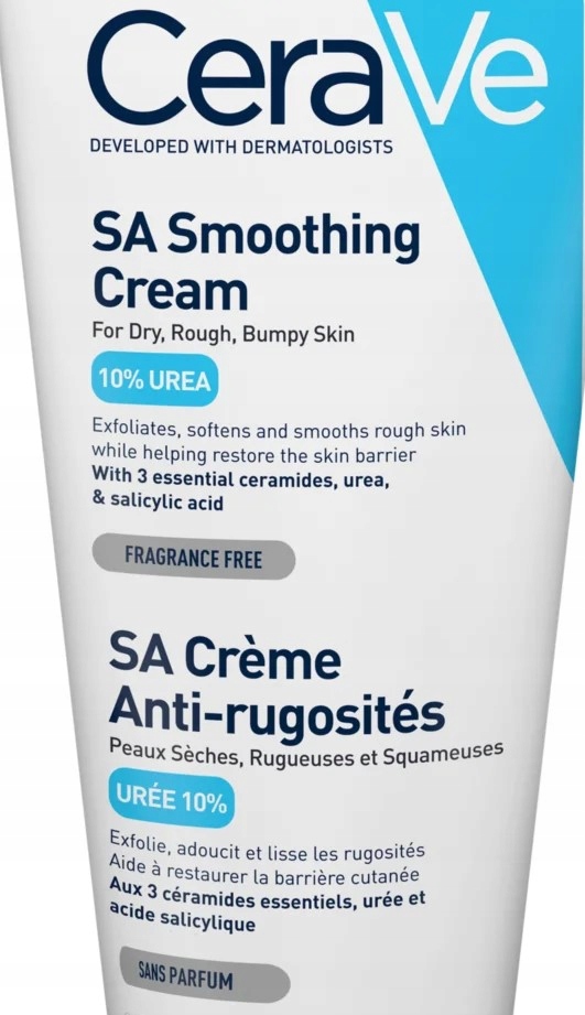 Balsam z kwasem salicylowym złuszcza, zmiękcza i wygładza bardzo suchą skórę, oraz wszystkie typy szorstkiej skóry od łuszczącej się skóry na nogach aż po wypryski na ramionach. Aby usunąć martwe komórki skóry i pomóc Ci uzyskać upragnioną gładką skórę, zalecamy stosowanie balsamu wygładzającego do skóry szorstkiej, który dzięki zawartości kwasu salicylowego i mlekowego delikatnie złuszcza skórę, a z kolei dzięki zawartości nawilżającego kwasu hialuronowego oraz niacynamidu – pomaga jednocześnie zmniejszyć utratę nawilżenia. CeraVe SA Wygładzający Balsam jest stworzony tak, aby pielęgnować i zmiękczać bardzo suchą skórę. Dzięki zawartości kwasu salicylowego, kwasu mlekowego, kwasu hialuronowego i niacynamidu, nasz bezzapachowy balsam do skóry szorstkiej pomaga poprawić kondycję skóry, złuszczając ją, nawilżając i kojąc, jednocześnie przywracając jej naturalną barierę ochronną dzięki trzem kluczowym ceramidom. Aby pomóc w utrzymaniu odpowiedniego poziomu nawilżenia skóry, CeraVe SA Wygładzający Balsam posiada również opatentowaną technologię MVE, która zapewnia stałe nawilżanie przez 24 godziny.
